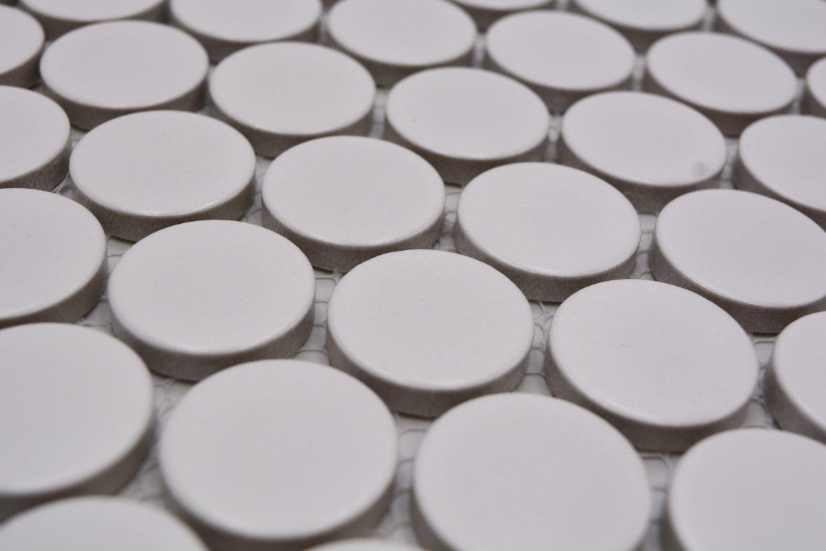 Knopf er en dekorativ mosaikk-knappflis som som består av små, runde fliser.